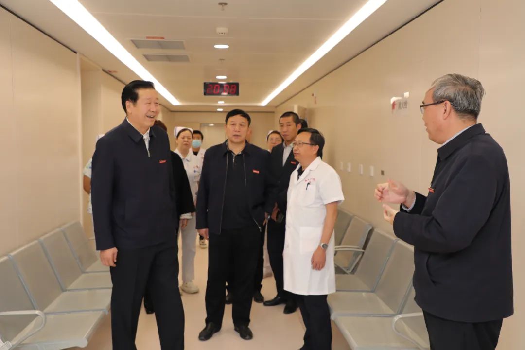 赵天杰对第七附属医院在医疗硬件设施建设、改善就医环境、提升医疗服务能力和水平等方面工作给予了充分肯定。他说,医院要充分发挥“自治区老年病医院”医疗辐射作用,找准发展定位,以老年人健康需求为导向,优化供给侧改革,着力提升诊治服务能力。要加强人才培养,通过“派出去、引进来”等多种形式,打造一支高水平的教学、医疗、科研人才队伍。要切实把学校开展的“六大活动”与医院工作实际结合起来,开动脑筋、深入思考,善问“是什么”“为什么”“怎么干”,以问促思、以思践行、以行求效,以新大楼投入使用为契机,形成重实干、敢担当、善作为的新风正气。要加强学科(专科)建设,更好地发挥自治区金秋湾医养康养中心的引领辐射作用,努力为广大人民群众提供全方位全周期的医疗健康服务。