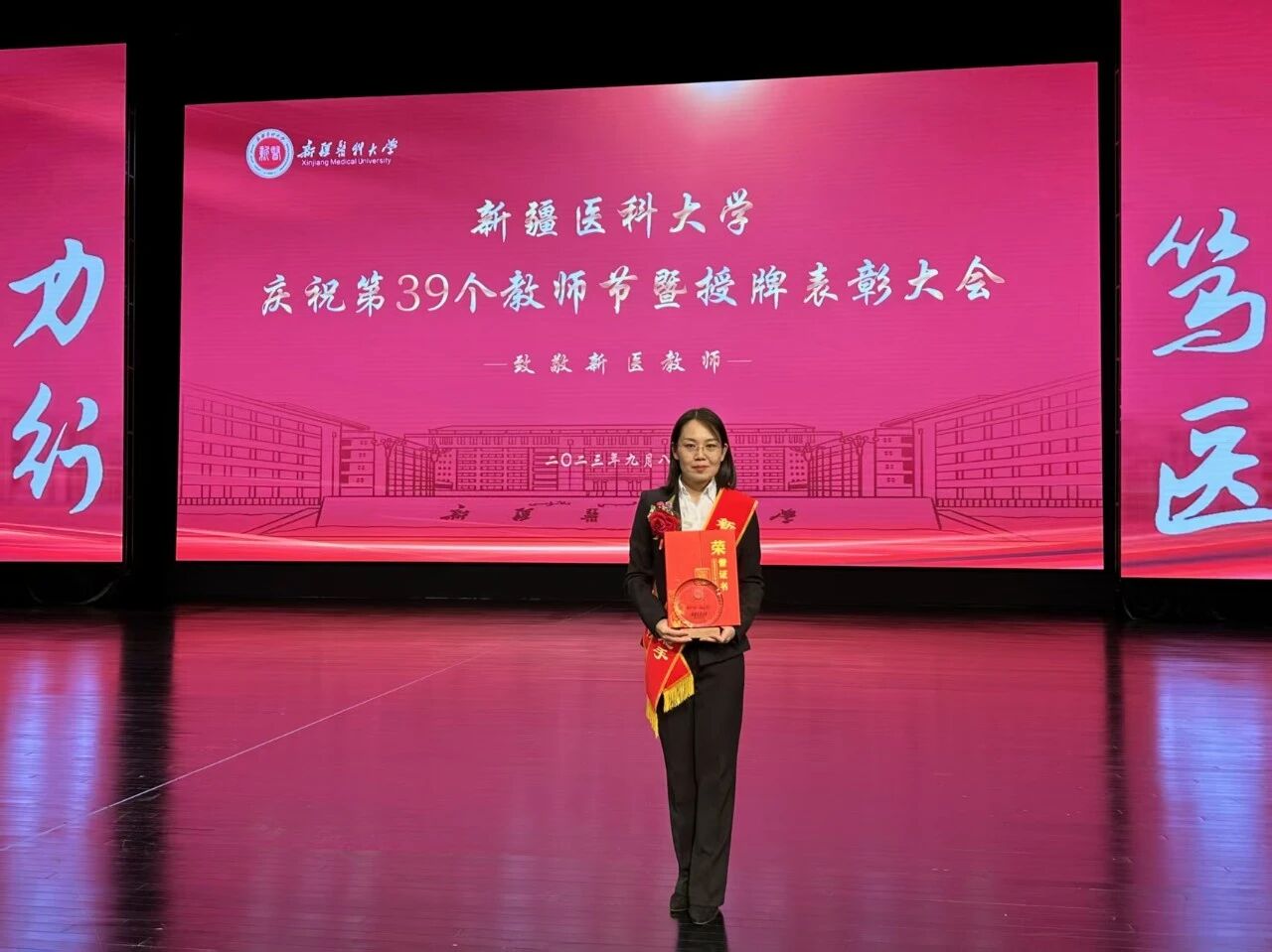 她的教学创新实践得到了广泛认可,连续多年在自治区级和校级教学比赛中斩获佳绩,先后荣获第四届全国教师教学创新大赛新疆赛区二等奖、校级一等奖;获得第二届和第三届全国教师教学创新大赛校级三等奖,获评校级教学能手,在新疆医科大学首届医学教育题库命题创新大赛中荣获一等奖。这些成绩在一点一滴中见证着她在医学教育路上的深耕与突破。