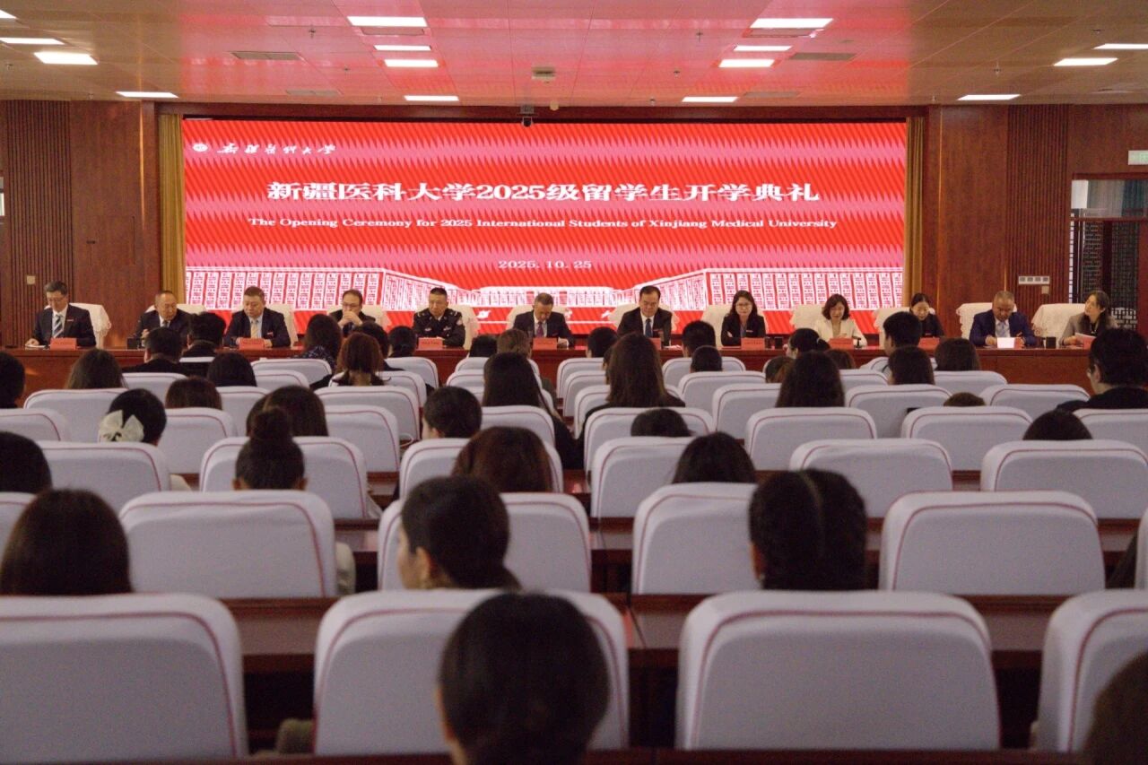 秋阳溢彩,杏林迎新。10月25日上午,新疆医科大学2025级留学生新生开学典礼在雪莲山校区综合楼报告厅举行,又一批来自丝路沿线国家的青年学子正式开启了在新疆医科大学的求学之旅。校党委副书记孙红新出席开学典礼,并向2025级留学生送上了开学寄语。