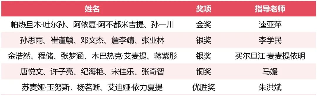 本次大赛同时揭晓了“外研社·国才杯”“理解当代中国”全国大学生外语能力大赛短视频赛道新疆赛区的获奖名单,我校共5支团队脱颖而出,荣获1项金奖、2项银奖、1项铜奖及1项优胜奖。