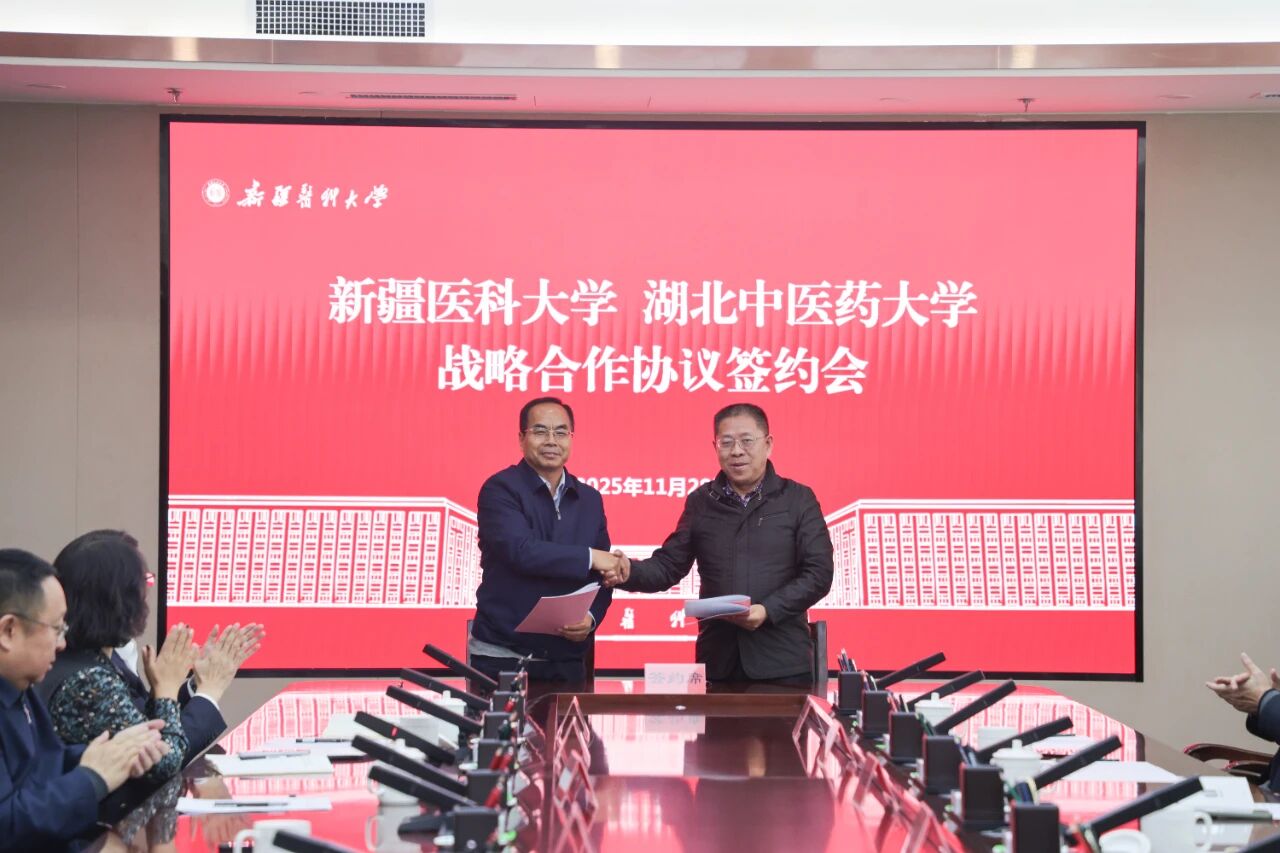 两校签订了《湖北中医药大学——新疆医科大学战略合作协议》。