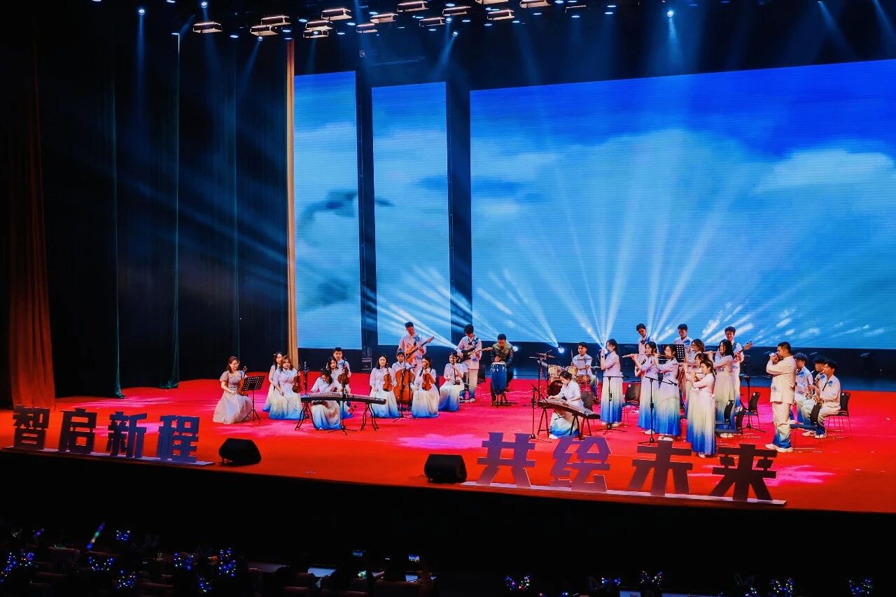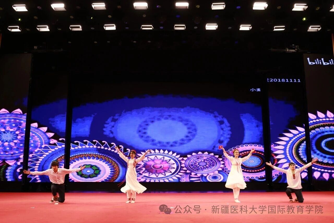 晚会现场,新医学子身着多彩服饰起舞《民族团结花盛开》,经典合唱《我的未来不是梦》与原创朗诵《天山医脉》抒发医者情怀,光影表演与温情歌舞串联起校园生活的动人瞬间。晚会融合器乐、朗诵、舞蹈等多种形式,并创新引入机器人主持及AI互动环节,传统与现代交融,温情与科技碰撞。最后,全场师生合唱《相亲相爱》,在悠扬旋律中回望过往、共启新程,展现新时代医学青年蓬勃朝气与使命担当。