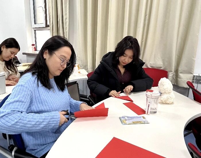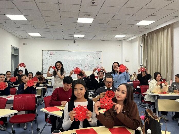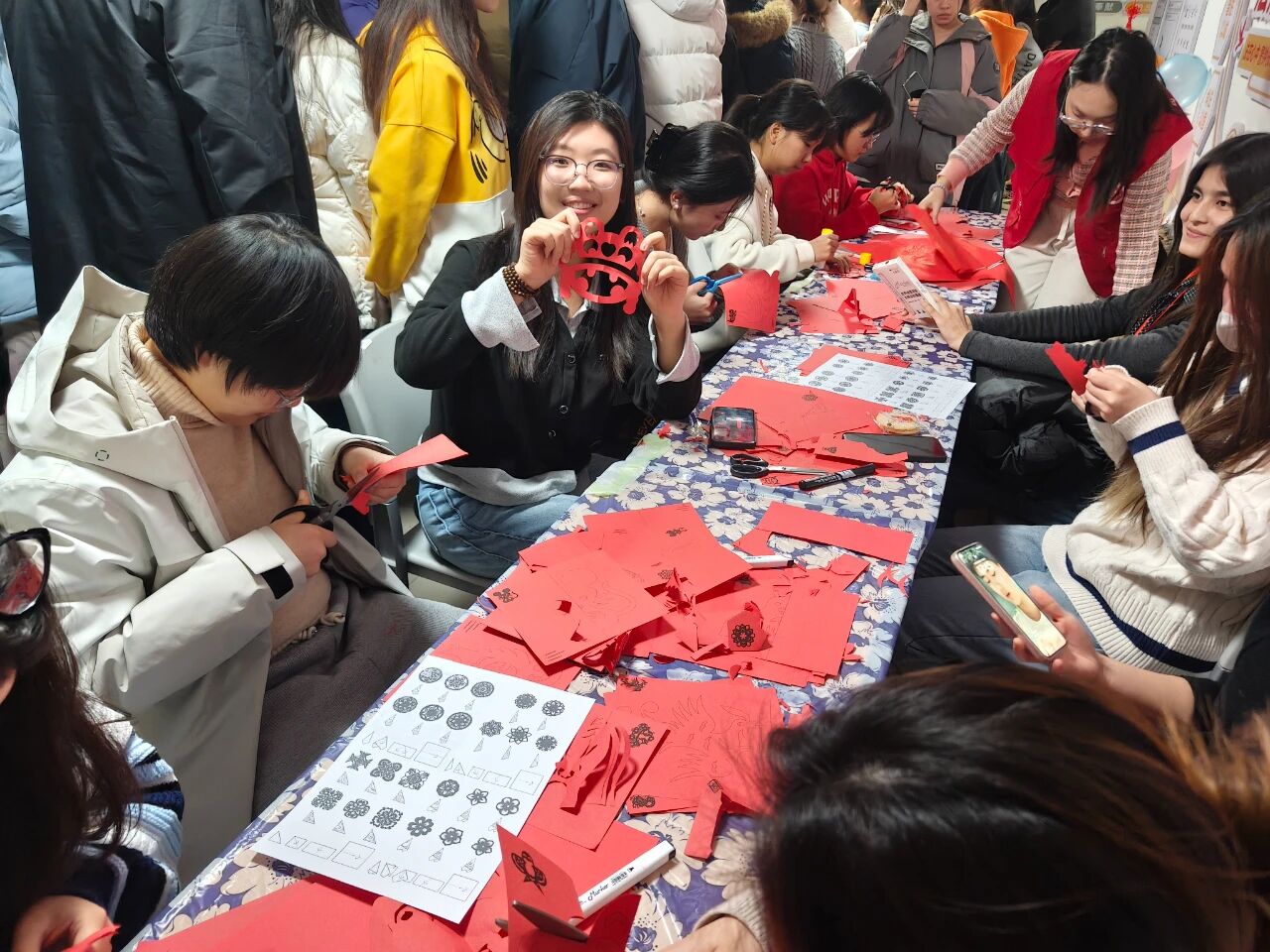 人文学院“指尖生花·邂逅中国年”春节剪纸主题活动温情开启,全体留学生齐聚一堂,在一折一剪间,沉浸式感受中国传统民俗的独特魅力。活动现场热烈温馨,留学生们兴致高昂、专注创作。折纸时反复比对求精准,剪花纹时凝神屏气显认真,遇难题便向老师请教、与同伴切磋。生疏的剪刀渐趋灵活,一张张彩纸在巧手下化作造型各异的窗花与立体 “春” 字。