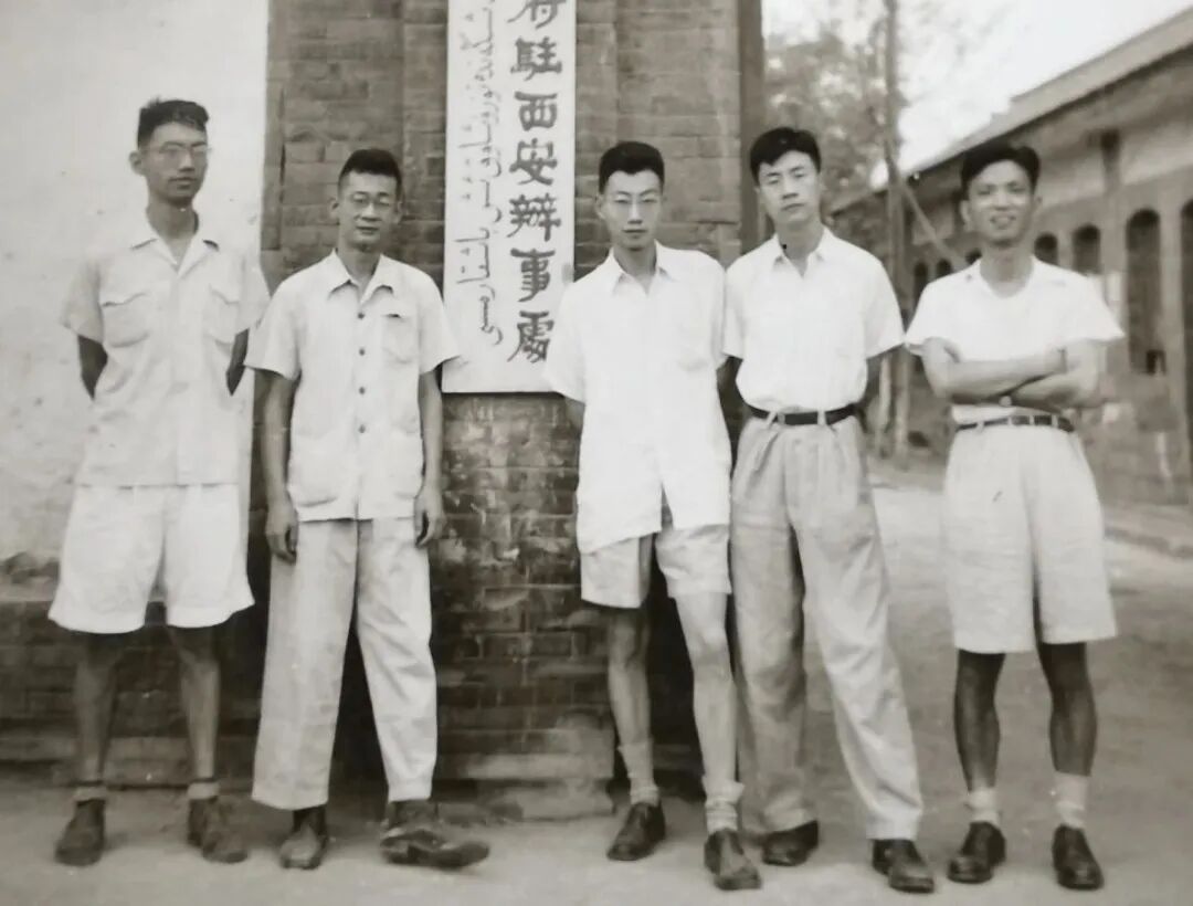1955 年 8 月,上海第一医学院首批支援新疆医学院建设的部分医生途经西安时的合影,左起:黄南卿、袁昌炽、汪无级、钱中希、樊苏培。