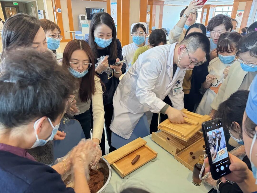 第四附属医院(第四临床医学院)举办了“情暖‘三八’·药香盈怀”药膳手工制作活动,大家在药香氤氲中亲手制作阿胶糕与山楂丸,感受传统中医药文化的独特魅力。在阿胶糕制作区,大家依序完成烊化、熬制、搅拌、入料、定型等工序。山楂丸制作区,大家将打碎的山楂粉与炼蜜反复揉搓,搓条、分剂、塑形,一枚枚圆润饱满、色泽红亮的山楂丸在掌心成形,活动尾声,大家纷纷展示自己的手工作品,感受到了节日的温暖与关怀。