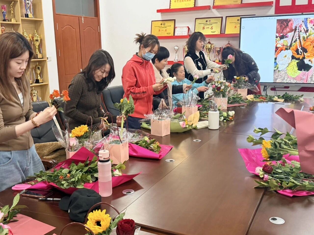 维吾尔医学院组织了以“花点时间·享受生活”为主题的创意插花活动,老师们齐聚一堂,玫瑰温婉、康乃馨柔美、洋桔梗清雅,在一双双巧手的修剪与组合下,普通的花枝逐渐呈现出灵动的姿态。大家时而低头专注构思,时而轻声交流心得,欢声笑语间,一篮篮独具匠心、风格各异的花艺作品陆续诞生,大家在花香中感受美好,在创作中收获喜悦。