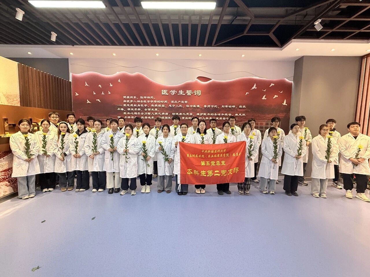 基础医学院的师生来到新疆红色文化展览馆,开展了“缅怀革命先烈·传承红色基因·勇担医学生使命”主题党日活动。在讲解员带领下,大家重温了革命先辈在艰苦岁月中保家卫国的峥嵘岁月。活动尾声,师生党员面向党旗庄严宣誓,用铮铮誓言砥砺初心使命。