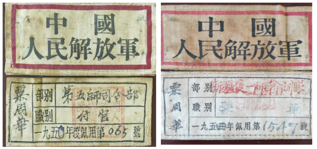 (粟周华参军时佩戴的两副中国人民解放军胸标)