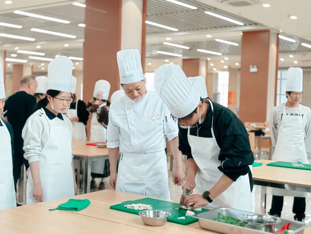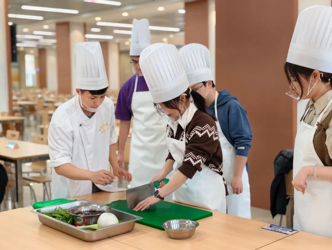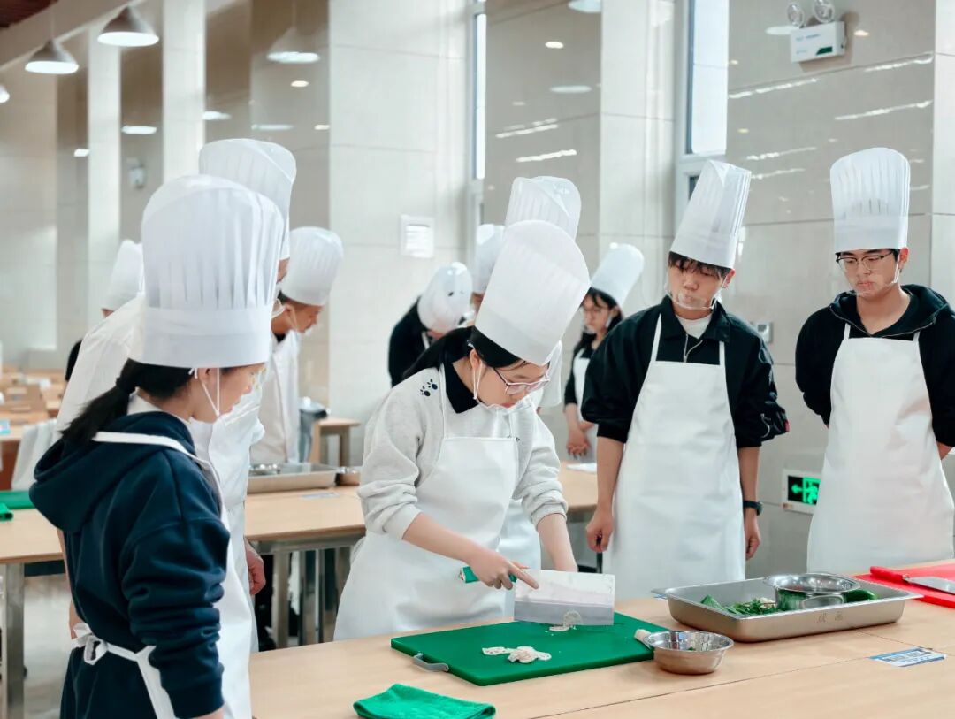 学校饮食服务中心的大厨们纷纷变身“厨艺导师天团”,不光教做菜,更把每道菜背后的文化故事、营养小知识娓娓道来,让同学们在动刀动勺之前,先在心里种下热爱中华饮食文化的种子。