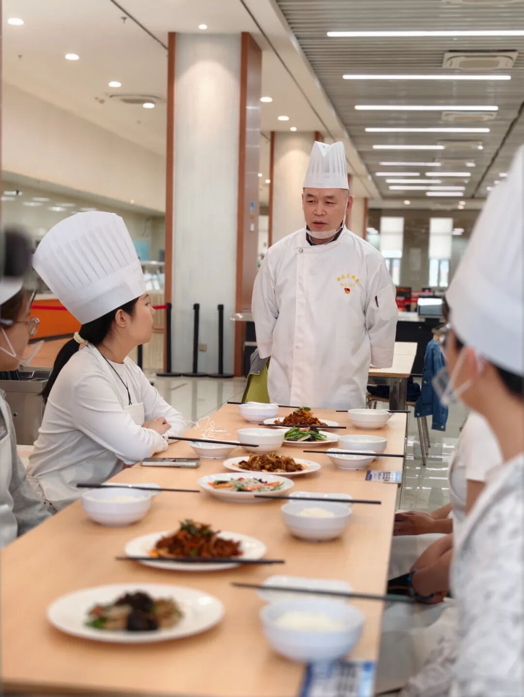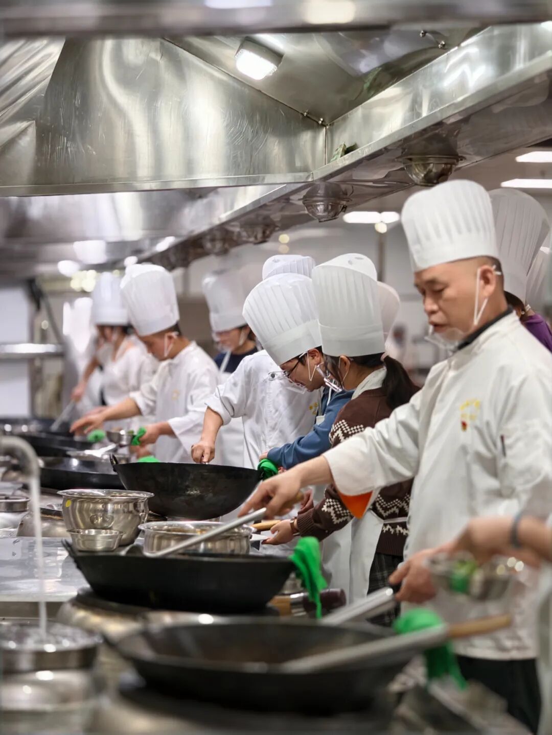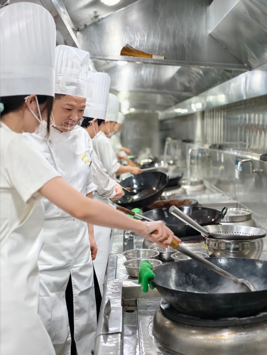 学校饮食服务中心的大厨们纷纷变身“厨艺导师天团”,不光教做菜,更把每道菜背后的文化故事、营养小知识娓娓道来,让同学们在动刀动勺之前,先在心里种下热爱中华饮食文化的种子。