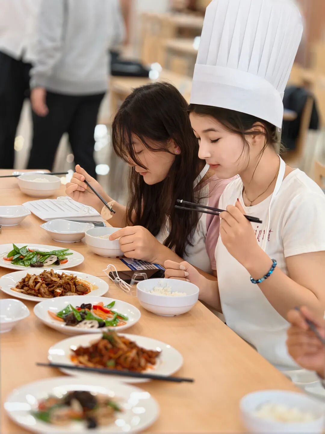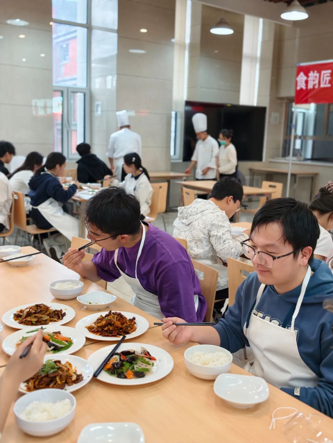美食摆上餐桌,同学们开心地品尝自己的劳动成果,那一口清香里,藏着的不仅是味道,更是劳动的满足与学习的骄傲。